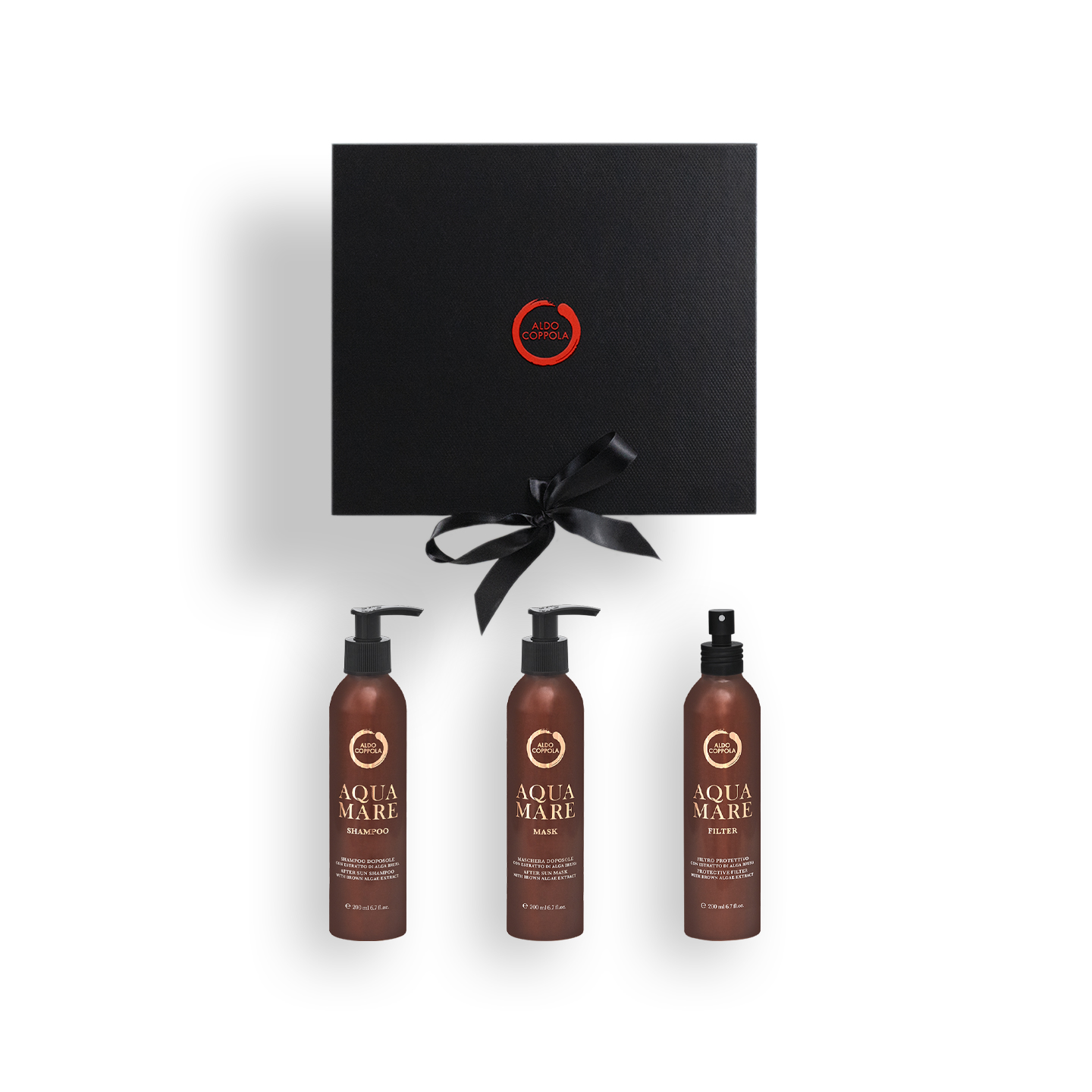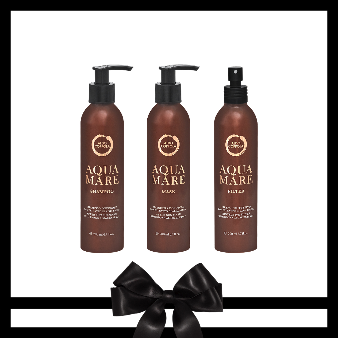 - Aquamare After-Sun Shampoo (200 ml): gently cleanses, removing salt, sand, and chlorine while deeply rehydrating the hair, preventing dryness and frizz.