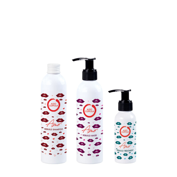 - AMO Rebuild Treatment: Trattamento professionale di ricostruzione profonda. Penetra in profondità e ricompone le strutture cheratiniche dall’interno, con intensa azione antiossidante.