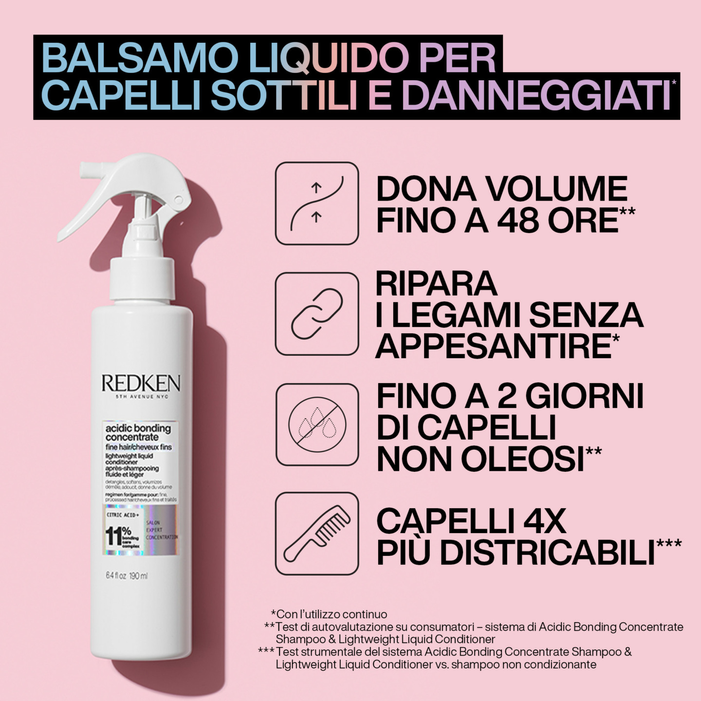 Formulato con Acido Citrico e 11% di Bonding Care Complex, grazie alla combinazione di agenti condizionanti e attivi rinforzanti, ripara i capelli deboli senza appesantire. La sua formula leggera permette a questo balsamo di penetrare velocemente nella fibra capillare donando volume fino a 48 ore. Si risciacqua facilmente, senza lasciare residui.