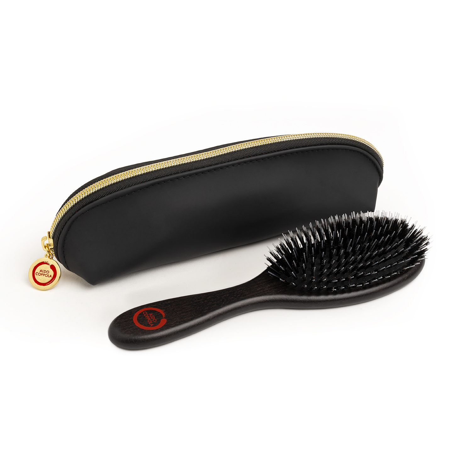 Ogni spazzola è confezionata in un portaspazzola da borsa personalizzato con eleganti finiture oro.
